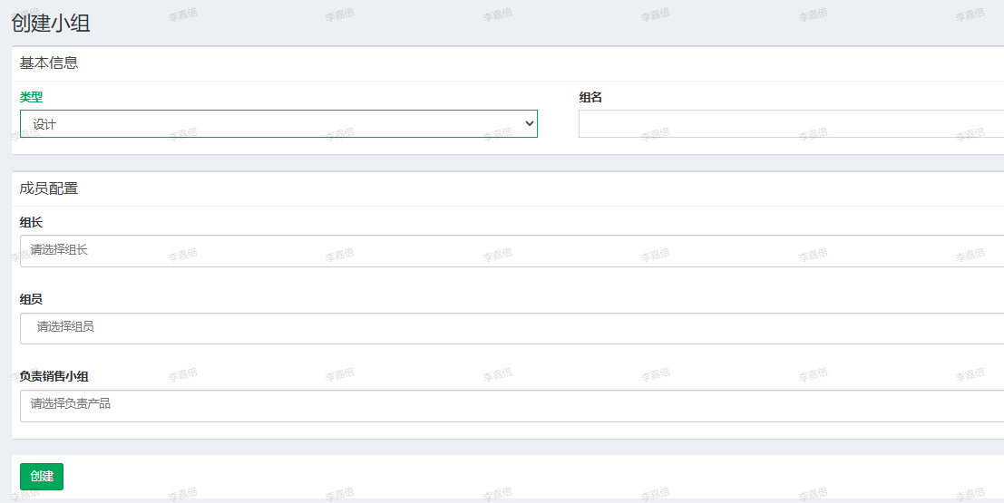 选择小组类型,填写组名、组长、组员、负责销售小组