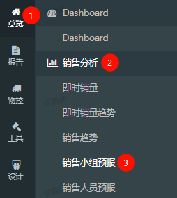 路径:总览-->销售分析-->销售小组预报