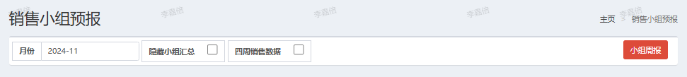 | 快速检索栏 | 支持按月检索数据,跳转小组周报页面按组员查看业绩 |