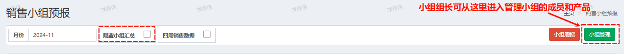 - 小组管理:仅组长可见,小组组长可通过这里,对组员/小组负责的产品进行调整;
