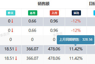 4.2.2、销售额-昨天:前天销售额,对比前天销售额环比增长百分比