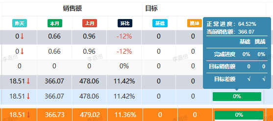 4.2.4、销售额目标-进度:在”目标-运营管理-销售小组目标“里设置的 基础目标和挑战目标销售额
