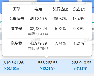 鼠标悬停在各指标上,可查看不同费用的占比情况。