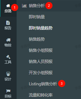 路径:总览-->销售分析-->Listing销售分析