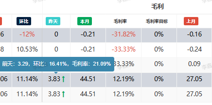 4.2.4、毛利-昨天:前天销售额,对比前天销售额环比增长百分比,前天毛利率