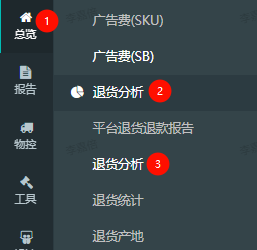 路径:总览-->退货分析-->退货分析