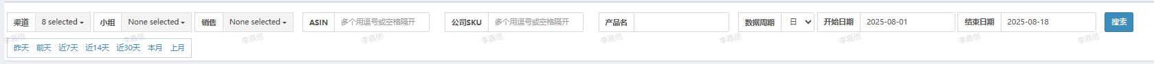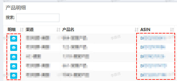 搜索框支持使用 渠道、产品名、ASIN进行模糊/精确搜索