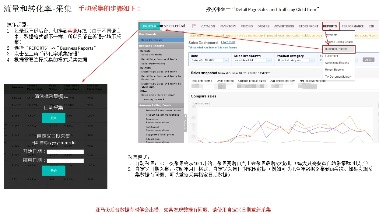 数据来源:后台自动采集、如果后台没有自动采集,可以自己登陆亚马逊后台点击下流量转化率采集按钮手动采集。