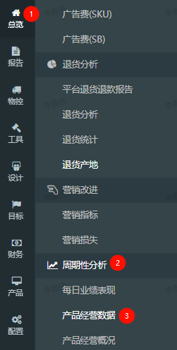 路径:总览-->周期性分析-->产品经营数据